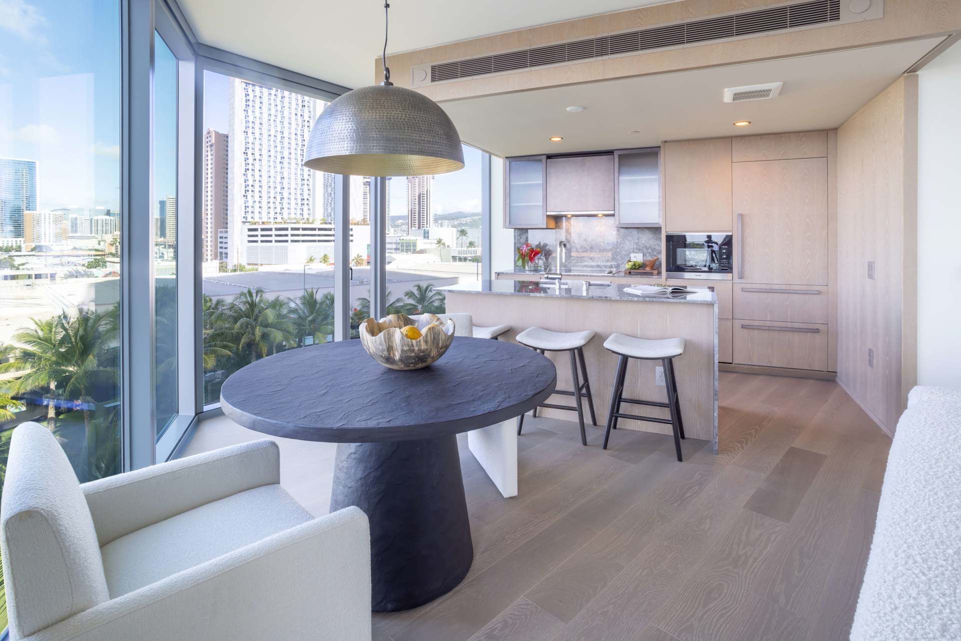 Welcome home to this beautiful end unit, #501, in Howard Hughes’ stunning new development in Ward Village.