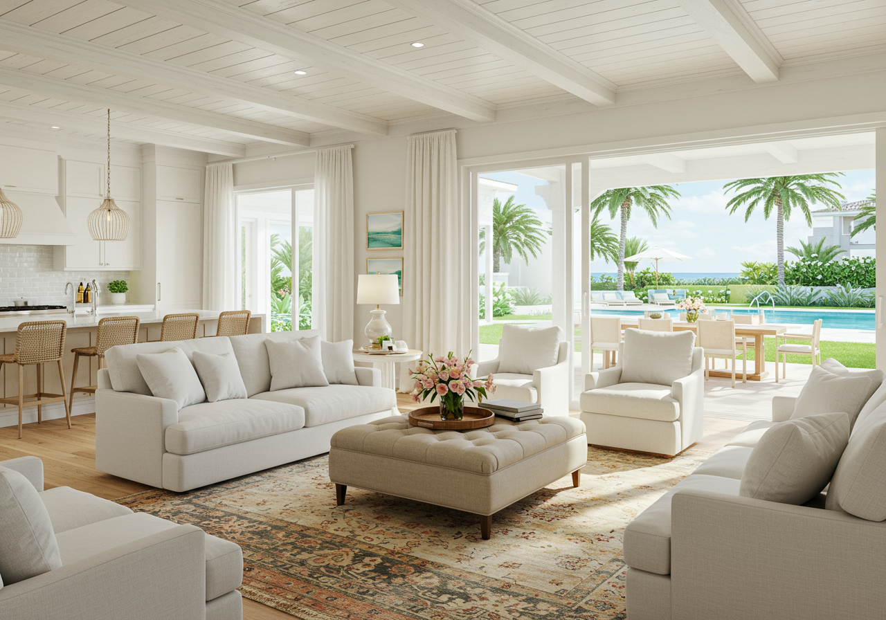 Thanks to this idyllic location, the one-of-a-kind coral-and-rock wall-lined garden channels the crisp ocean-air breeze, providing a constant flow of naturally refreshing cool air throughout the property and the property’s four bedroom interior.
