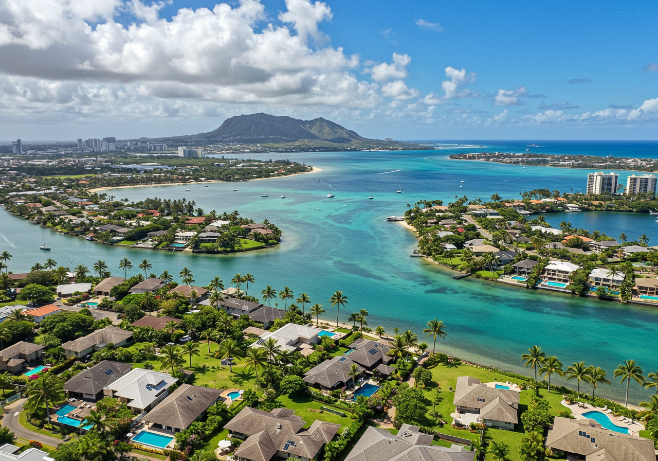 Gracious mid-century waterfront home nestled between the historic Kānewai Hawaiian Fishpond and Paikō Lagoon Wildlife Sanctuary. The lagoon is a historic Hawaiian fishpond dating back nearly 1000 years. It was formed at the base of Kuli’ou’ou Valley and is the last remaining fishpond in Maunalua Bay. Today, the lagoon is a sanctuary to a host of rare fish, plants, and birds.
