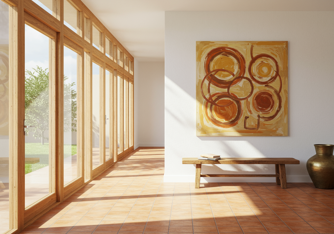 The welcoming entry, which in the tradition of Hawaiian modernism hides the ocean view, allows guests to adjust before entering the grand living space.