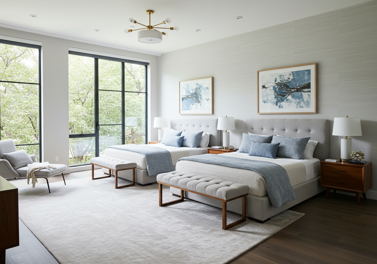“For the bedrooms I chose softer tones with incredible detail, so not until you encounter the work up-close, do you notice the subtle elements working together to create a successful piece,” added Sueda.