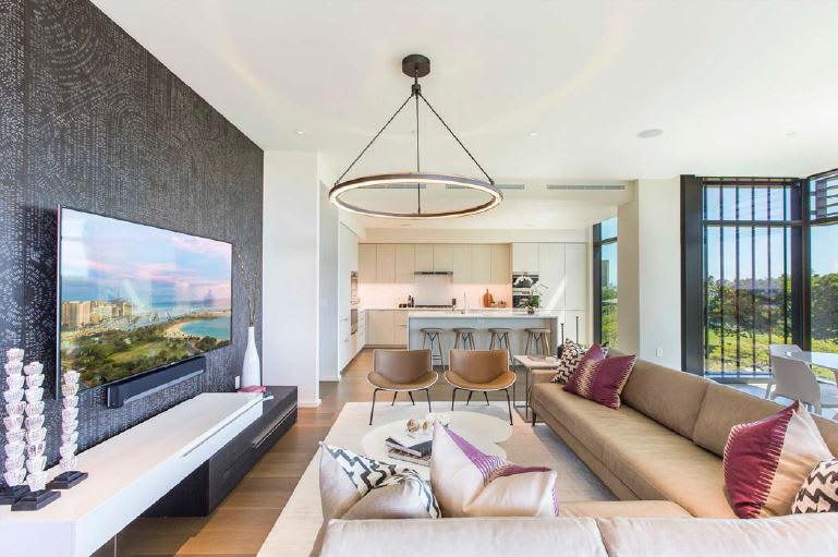 This premier 3-bedroom, 3.5-bathroom residence is nestled on the crest of Park Lane overlooking the Pacific Ocean and Ala Moana Beach Park. It has a modern aesthetic with a design nod to our island culture through its textiles, colors and coveted art collection. This residence – aligned to an infinite horizon, is positioned with unparalleled vistas of Hawaii’s natural beauty, while being intentionally designed with a composition of clean and modern lines.