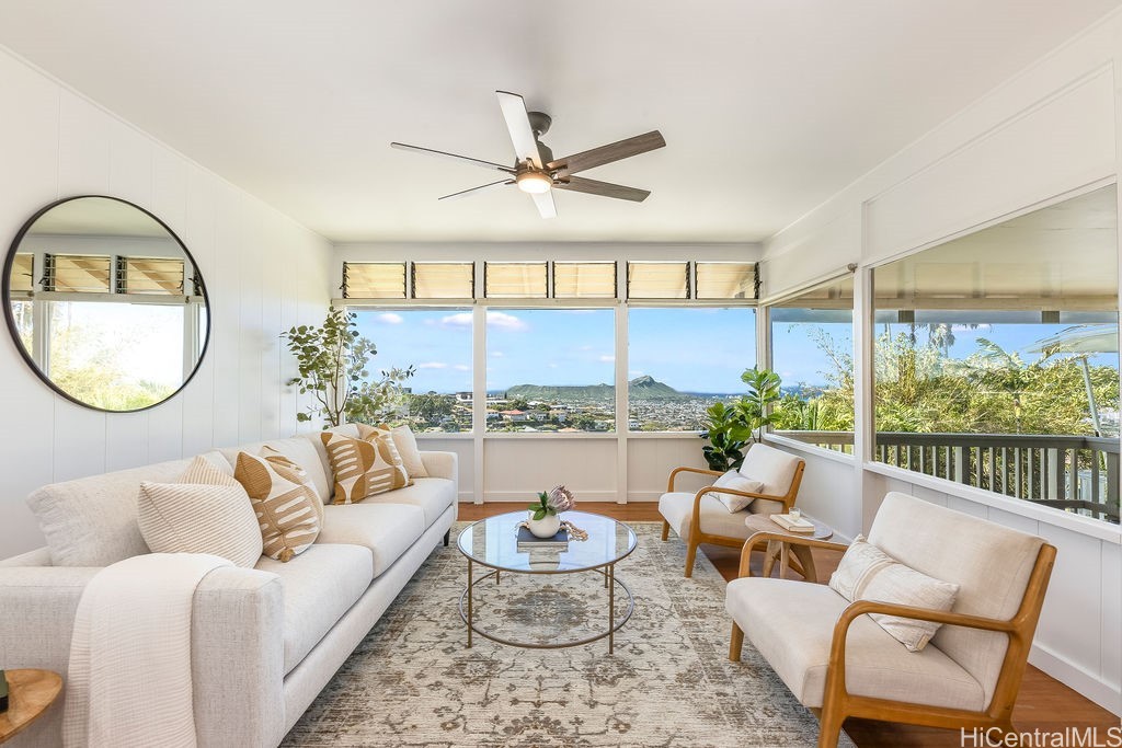 Sweeping Diamond Head & Ocean views! This 4 bedroom/4 bathroom home in St. Louis Heights offers incredible flexibility with endless options and excellent investment potential! Enjoy as a primary residence OR take advantage of the possibility of three separate rental units: a 1 bedroom/1 bathroom unit on the bottom floor, an expansive 2 bedroom/2 bathroom unit on the middle level, and a Studio/1 bathroom unit on the top level. Purchase the property and rent all three units individually; live in one unit and rent the other two; or reconnect the three units to create one large single-family residence again! The home has both interior and exterior stairs to travel between floors. A carport at street level fits two vehicles and a tropical backyard with an expansive flat grassy lawn and mature trees bordering the property. The opportunities are endless AND the views are stunning! Layout and square footage may not match property tax records. Portions of this property are tenant-occupied, please do not disturb the tenants.