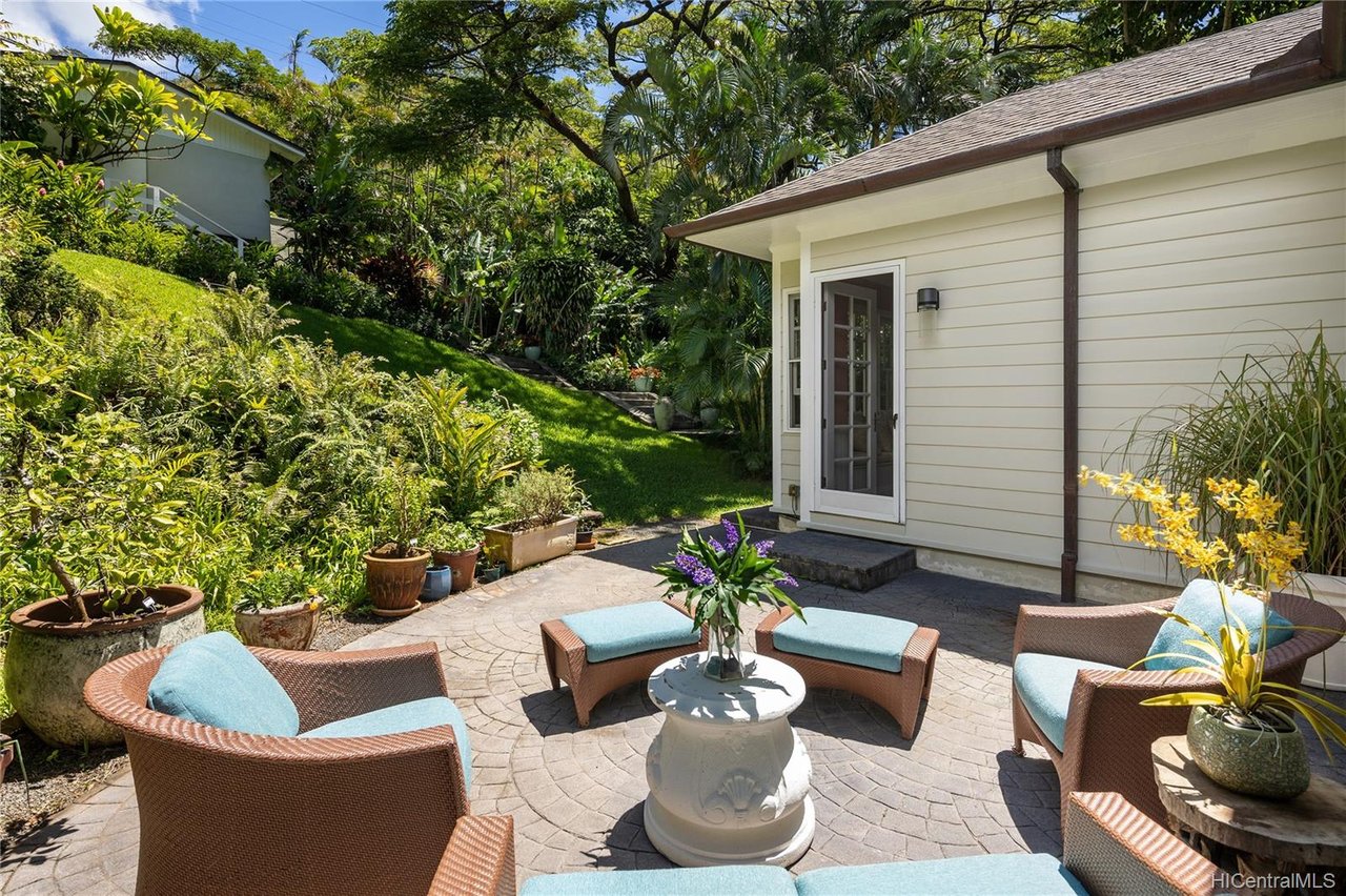 Iconic Manoa five-bedroom five-bath residential estate surrounded by nature. The gorgeous home is idyllically situated on an expansive 22,583 square foot lot an with epic rolling yard, mature fruit trees, lush landscaped grounds, and a giant monkeypod tree with a rope swing, creating a unique and private botanical park-like sanctuary.